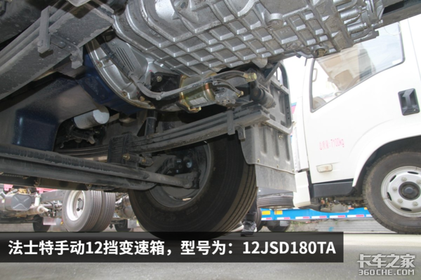与发动机相匹配的是法士特的手动12挡变速箱,最高挡速比为0.78。属于高速物流比较常规的组合。