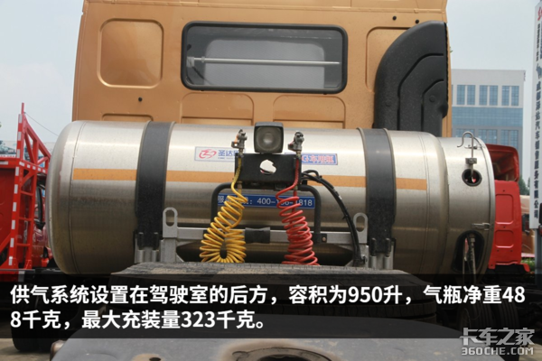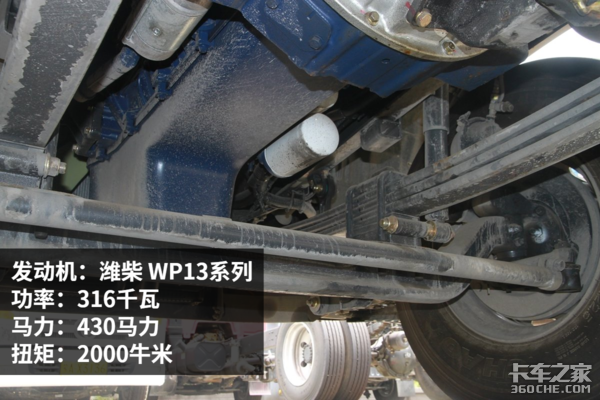 在动力系统方面,这台柳气乘龙H7牵引车搭载的是潍柴WP13NG430E52发动机,排量为13L,最大输出功率316千瓦、430马力、最大输出扭矩2000牛米。由于LNG液化天然气属于清洁能源,基本无需担心排放问题。