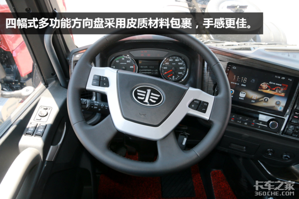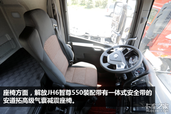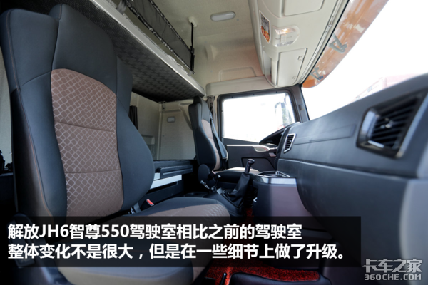 ● 内饰点评:解放JH6智尊550的内饰的确是没有什么槽点,设计、做工、用料都很用心。人性化的配置和智能升级,迎合了当下“互联网+”的工作生活理念,卡车搭载车载WIFI并且赠送流量,当属全国首家!