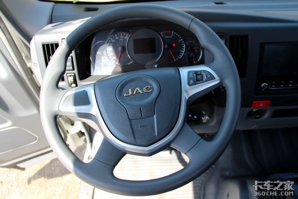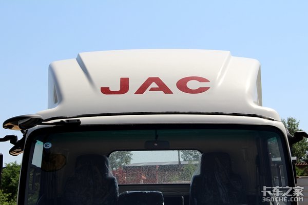 驾驶室顶部配原厂导流罩,可以降低上装部分带来的风阻,提高整车的燃油经济性。导流罩上面的JAC标识,增加了车辆品牌的辨识度。