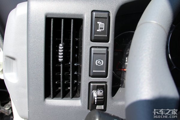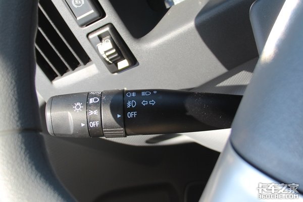 全能卡车的灯光组合开关在方向盘的左侧,通过开关标识可知,这台车配有自动大灯,这个配置在同级别轻卡中还是非常少见的,可见帅铃全能卡车有出色的人性化配置,方便驾驶员的日常操作。