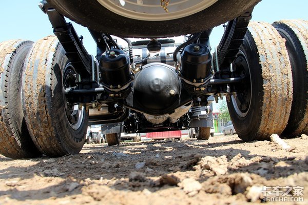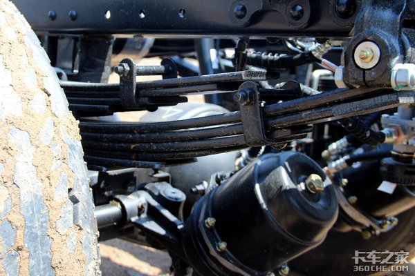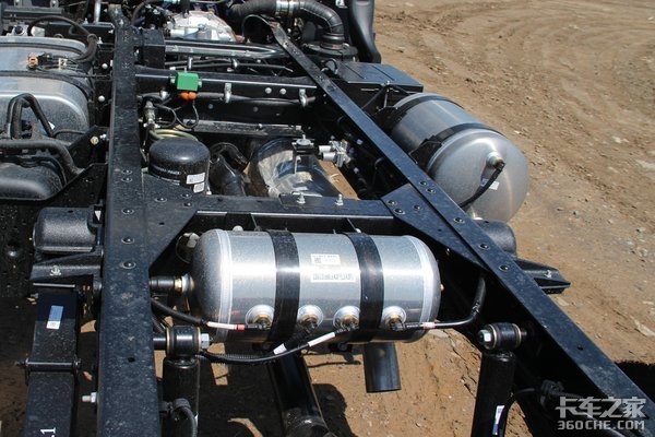 该车采用气制动,大梁上两个储气罐,为整车制动提供了充足的压缩空气。气压制动,制动力度大,后期维护保养便宜,驾驶员驾驶更加安全。