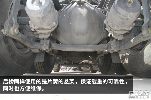 该车前后悬架采用少片簧结构,减少片簧的数量加大单个片簧的质量,这样做的目的在于减轻重量的同时保证原有的承载性,结合大马力发动机,保证了该车拥有非常大的承载性能。
