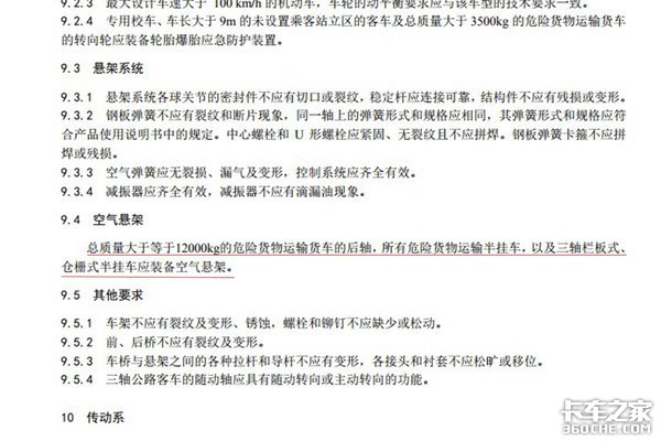 2018年1月1日正式实行的新GB7258条例中就有提到:“总质量大于等于12000kg的危险货物运输车的后轴,所有危险货物运输半挂车,以及三轴栏板式、仓栅式半挂车应装备空气悬架。”这项规定将使得空气悬架越来越普遍,得益于空气悬架的特性,相比传统钢板悬架来说,空气悬架确实更适合拉危险品或者其他高附加值货物。