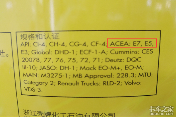 ACEA对重柴油发动机润滑油的认证分为四种等級,他们分别是:E2、E3、E4、E5、E6、E7、E9,同样也是数字越大机油的等级越高,一般大牌机油都会同时认证这些相应的等级标准,大家可以仔细观察桶上的标注。