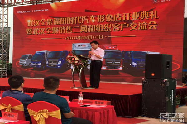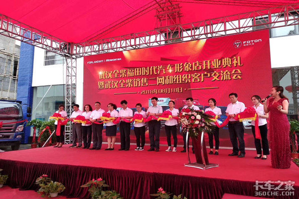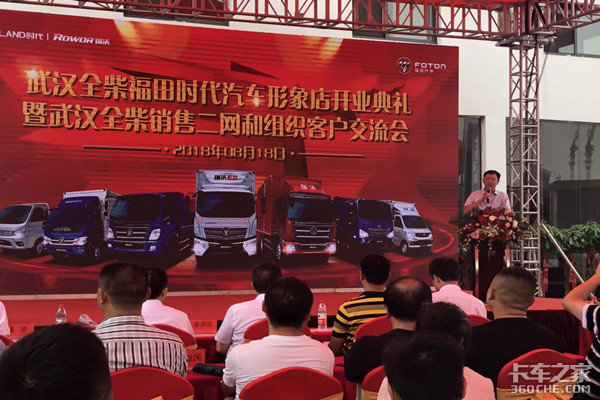 【卡车之家 原创】2018年8月18日,武汉全柴动力有限责任公司福田时代汽车形象店开业典礼暨武汉全柴销售二网和组织客户交流会在武汉黄陂区汉之泰汽车市场内隆重举行,莅临本次活动的嘉宾有:福田商用汽车集团高级副总裁、时代事业部总裁王术海,安徽全柴动力股份有限公司副总经理顾忠长,武汉全柴董事长、总经理童贤武,以及武汉全柴各合作二网同仁和广大新老客户。