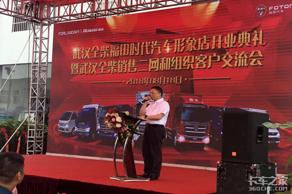 首先,童总代表武汉全柴全体职工对您们在百忙之中能够莅临武汉全柴福田时代形象店开业庆典,暨武汉全柴销售二网和大客户交流会的活动表示最热烈的欢迎和衷心感谢!并借此契机说道:我们将以福田时代汽车形象店的建立为契机,树立“全新形象、全新时代、创新未来”的发展理念。我们坚信在集团公司的坚强领导下,在福田时代各级领导的大力支持下,在全体销售二网和广大用户的鼎力支持下,我们全体员工将转变销售理念,补齐短板,重点突破大客户和网络销售,确保2018年销量突破1000台销售大关,未来三年年销量争取突破1500台,年复合增长率达到25%。确保武汉全柴健康可持续发展,不断提升福田时代汽车在武汉乃至湖北地区的市场占有率和影响力。