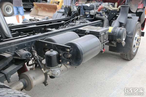 右侧则布置了空滤、蓄电瓶组和储气筒以及气路单元,两个储气筒的尾部均留有外接气口,方便驾驶员后期加装林水器等组件。