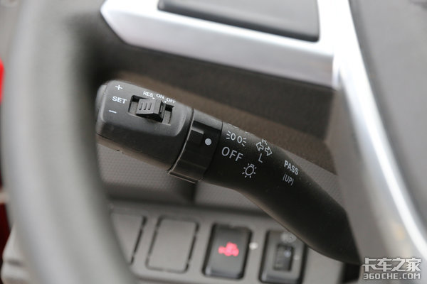 方向盘左侧的组合开关集成了定速巡航、大灯开关以及转向灯。右侧则为雨刮控制和发动机排气制动的开关。