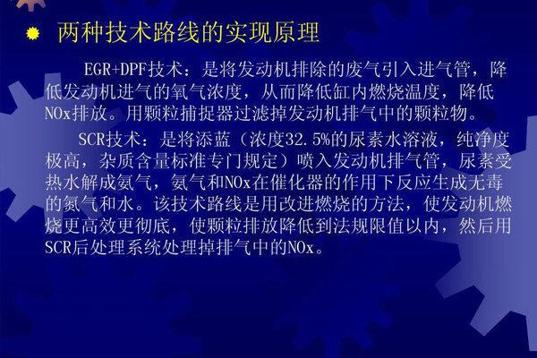 柴油机的排放物主要是因为燃烧不完全而导致的燃烧废物,废弃再循环就是讲废气再进入发动机燃烧,又加装颗粒捕集器等装置,虽然暂时降低了排放物。