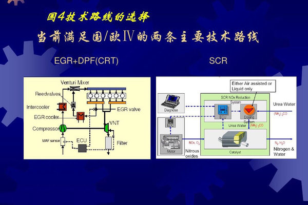 柴油机的排放物主要有NOx、CO、HC等对人体与环境有害的物体。针对相关污染排放的技术路线主要有EGR(废气再循环)和SCR(选择性催化还原)两种。
