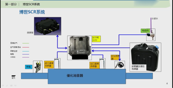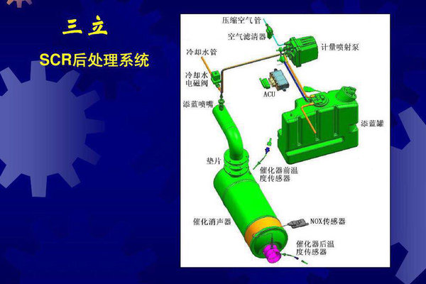 对选择性催化还原系统,相信大家也不是那么陌生,其主要部件为催化消声器,尿素罐,尿素泵,尿素喷嘴等等。