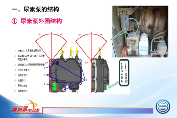 空气辅助泵的故障率相对较高,笔者最常见到的故障就是排放超一等级,二等级限制(各系统名称不同,其故障原理是一样的),该故障导致发动机限扭。究其原因是尿素泵常因为保险烧毁,加热器故障而堵塞不工作。或者是压缩空气方面故障引发不喷尿素、或者雾化不好都会导致“超一超二”故障。这种泵任何一点问题都可能导致排放超标故障,但是这种泵配件便宜,维修成本低,内部构造相对简单,便于拆解维修和清洗保养。