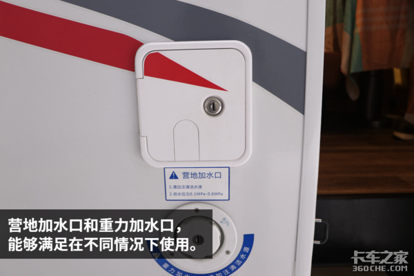 车身外侧的外界电源插口和注水口,能够满足车上人员用水需要,保障轿厢内部的用电需求。