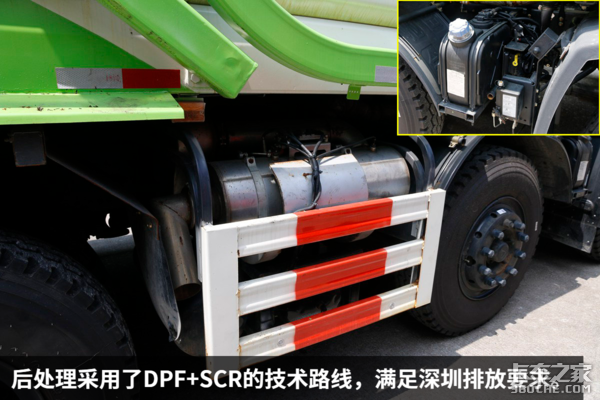与普通版本的天龙KC自卸车不同,这款专为深圳推出的泥头车,它搭载了玉柴YC6L330-58国五发动机,并配备了DPF(颗粒捕捉装置),满足深圳市对新型泥头车的排放要求。