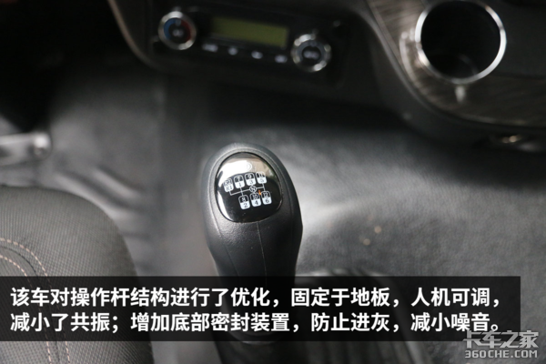 重新对操纵杆结构进行了优化,将操纵杆固定于地板,采用人机可调设计,有利于隔绝发动机震动,减小共振。增加底部密封装置,防止灰尘进入,减小噪音。