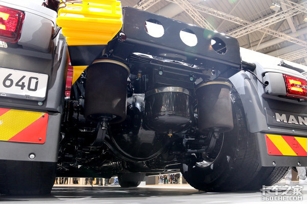 后桥方面,曼TGX采用的是空气悬架,如今空气悬架在欧洲已经是最常见的配置了,几乎所有的卡车都采用空气悬架,怪不得欧洲的卡车看起来都跑的很稳。