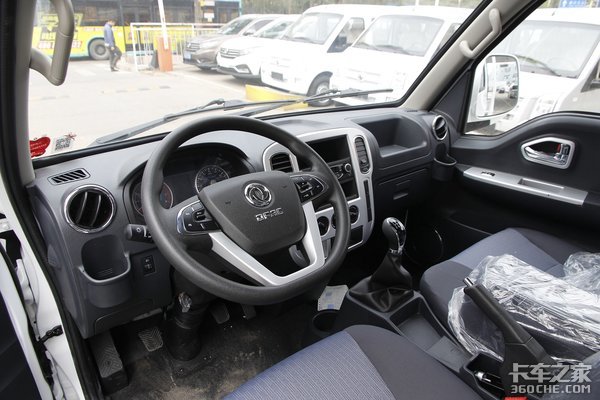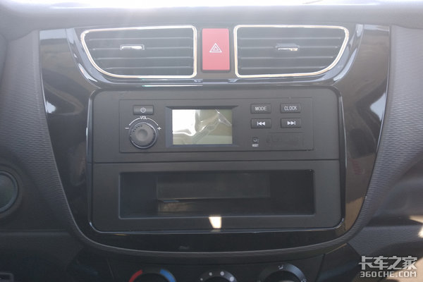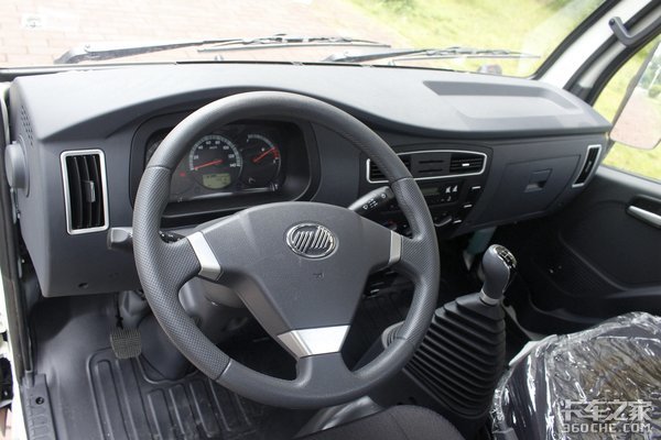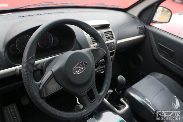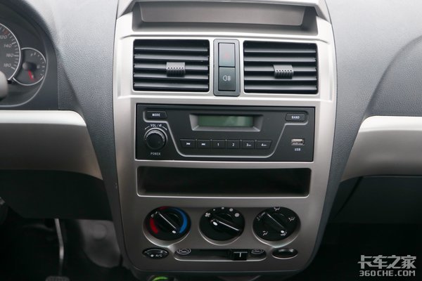 车内内饰以黑色为主,对于经常跑城镇的用户来说,也比较耐脏。采用银色装饰条的三幅方向盘,中控设计比较简洁,收音机、空调、点烟器12V电源、USB接口等,基本配置都有,驾驶员使用也比较方便。