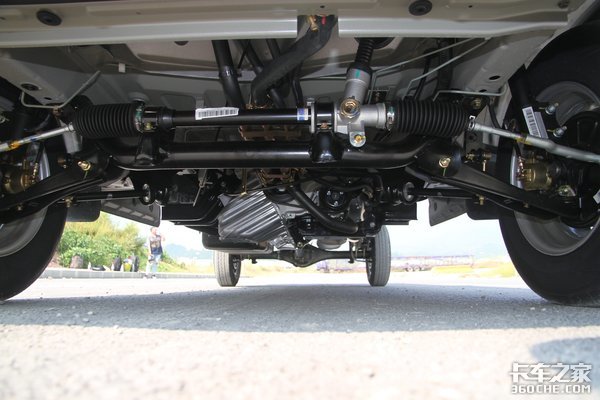 底盘采用非承载式结构,保证了车辆的装载性。并且采用双回路液压制动机构,后桥带感载比例阀,以确保车辆在不同的载重情况下拥有足够的制动力。