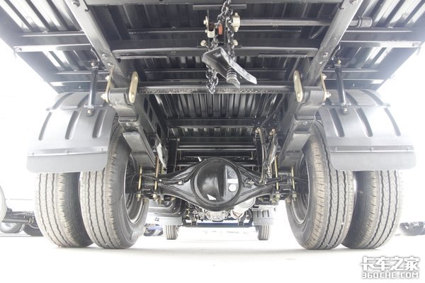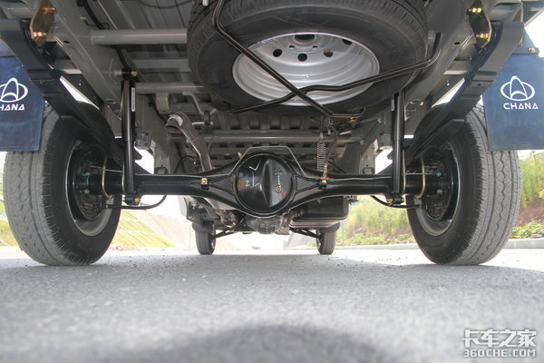 前后桥均为钢板悬架,2.5吨后桥,承载性高,保证了日常拉货。轮胎为万力185R15LT,采用45升铁油箱。