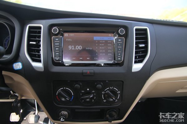 内饰上采用深色与浅色搭配,就连座椅也使用了黑白配色,车内完全就是一个轿车的氛围。带有电动车窗、7寸多媒体中控大屏、MP5、蓝牙、原厂空调、倒车影像等,功能十分强大,在同级别轻卡中算是比较少有的配置。