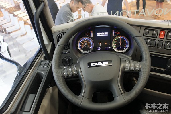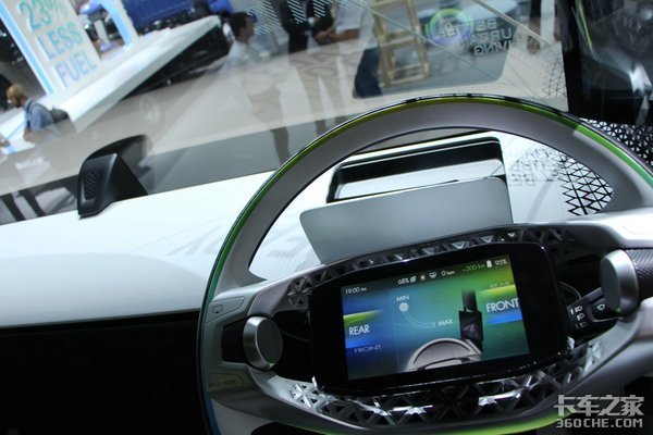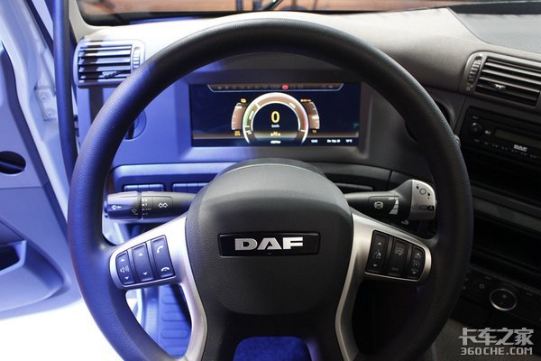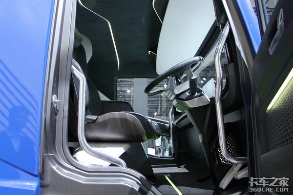 驾驶室部分也相当的科幻,整体设计非常的简洁,明显有别于普通车型的设计,全液晶仪表设置在方向盘上,这种把功能集成在方向盘上,法系乘用车也干过,最后的结果就是不好用,不知这款车型的效果咋样。