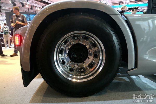 轮圈则采用的是美铝的铝合金轮圈,铝合金轮圈在欧洲重卡中出镜率特别高,可实现有效降重。
