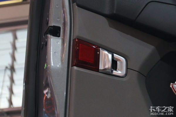 值得一提的是,在车门侧边还设计了一个红色警示灯以及夜锁装置,红色警示灯可以在打开车门时,提醒后车注意。另外,驾驶员夜晚在车内休息时,可以开启夜锁装置,将车门锁死,这样在驾驶室外部将无法打开车门,保证驾乘人员的安全性。