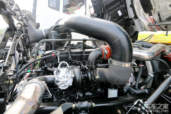 动力匹配方面,这台车搭载的是一台东风康明斯ISD290 62发动机,能够输出290马力的动力,满足国六排放,三轴车用290马力,可以说是很强劲了。