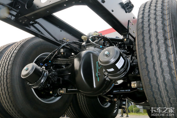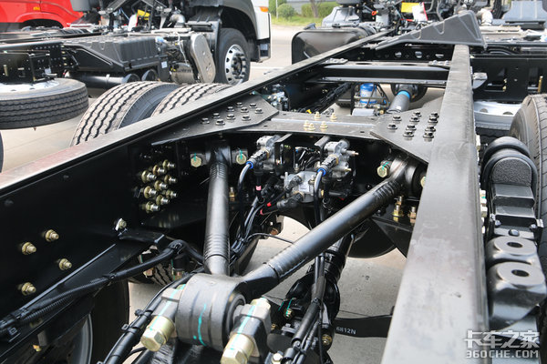 后桥型号具体是多少,我也不知道,只能看出来是冲焊车桥,而且是单级减速桥,轮胎是公路胎,我们推测这台车的使用工况应该有一定的时效性,并且大部分是在公路上行驶。