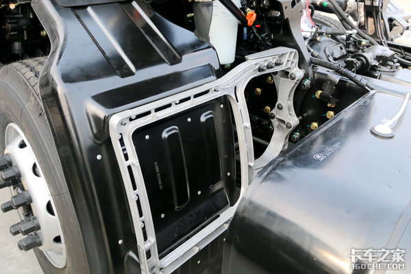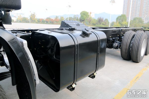 这个油箱竟然还是铁皮做的,这与现在铝合金油箱当道的现状有些不搭,完全跟高端重卡不搭啊!而且这个油箱个头也不大,看起来有些小气,实用方面倒是没什么问题,城市里跑的车也确实用不着考虑续航里程。