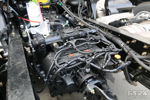 与发动机匹配的是一台法士特9JS119TA变速箱,共有9个挡位,最大输入扭矩为1190牛米,这与现在8挡居多的三轴载货车还是有一定区别的。