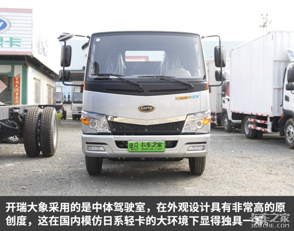 开瑞大象纯电动轻卡是基于开瑞绿卡S系车型打造,因此在外观方面延续了绿卡S系的设计风格,同时也沿用了同款驾驶室。