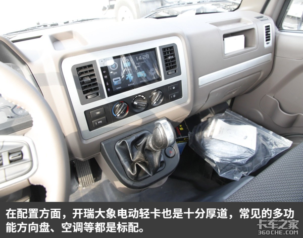 大象EV驾驶室采用1.8米宽的中体驾驶,内部空间宽裕。由于采用的是开瑞绿卡同款驾驶室,因此在内饰设计方面也是采用同样的布局。