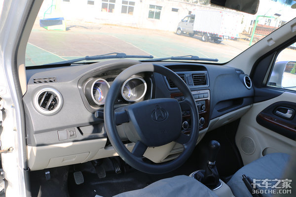 在内饰上,这台长安睿行M80采用黑色+米色的中控台设计,炮筒仪表的设计,给这台实用为主的长安睿行M80加分不少。值得称赞的是,这台车配备冷暖空调,给用户使用过程当中提供不少的舒适性。