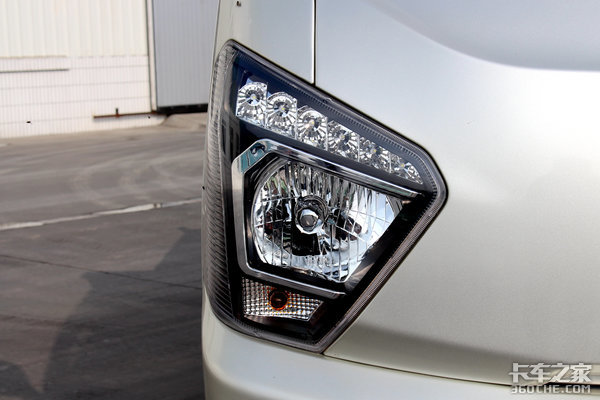 大灯方面,风云小卡采用了一个斜四边形的大灯设计,最上面是LED的日间行车灯,中间是远近光一体的大灯,并且还用镀铬装饰件装点,最下面是转向灯。这个大灯尺寸很大,在这个小车上更加显眼,让我第一时间想到“双眼皮,大眼睛”。