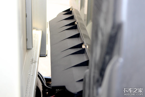 驾驶室尾部还设计了遮蔽罩,就像老房子的屋檐一样,能够遮蔽砂石、水泥等散装货物撒落在发动机上。