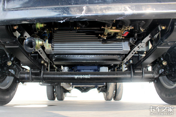 车桥方面,这款车的前桥是时风自己的SF113-7ABS型号车桥,并且采用三片钢板的板簧悬架,更加倾向于驾驶室的舒适性。