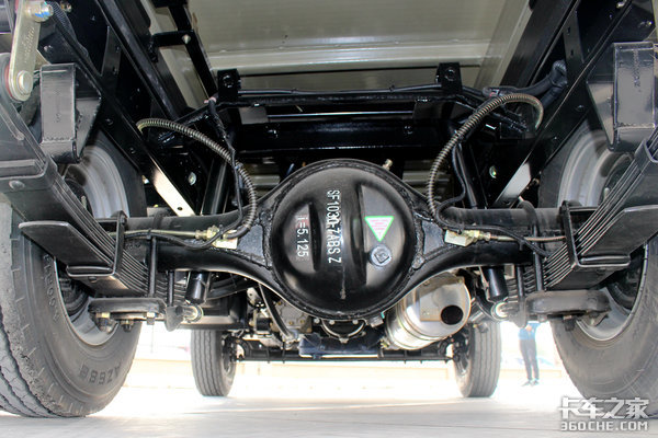 后桥则采用时风SF1030-7ABS Z型号车桥,速比5.125,采用5片钢板的板簧悬架,后桥更加倾向于承载性。