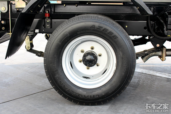 轮胎则是采用6.00R14LT型号的朝阳牌轮胎,非常典型的微卡、小卡车轮胎。值得一提的是,这台小卡的驱动桥采用双胎设计,对于车辆的承载性提高起到了不小的帮助。
