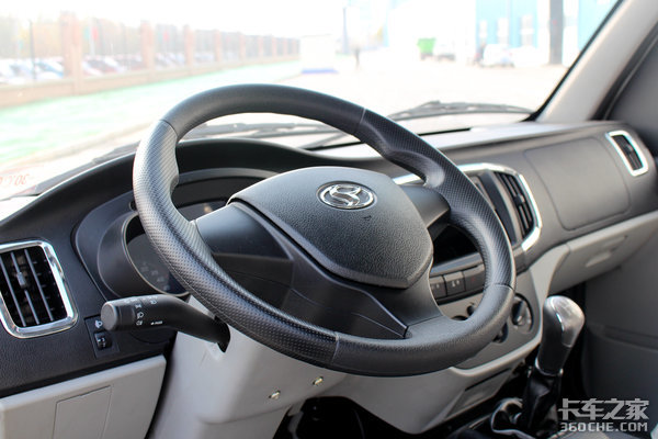 三幅式方向盘的设计也比较厚实,整体感觉就跟轿车方向盘一样,抓握位置还做了防滑处理,这一点做的很不错。