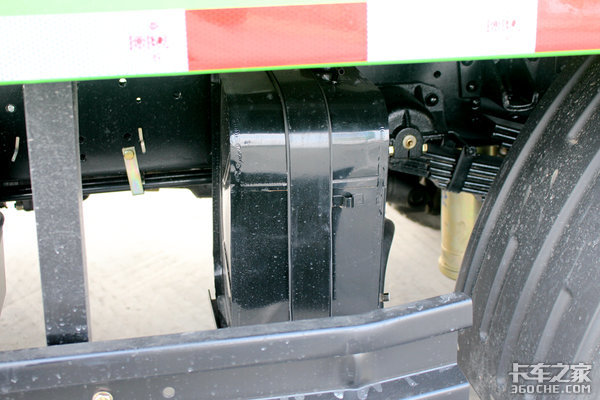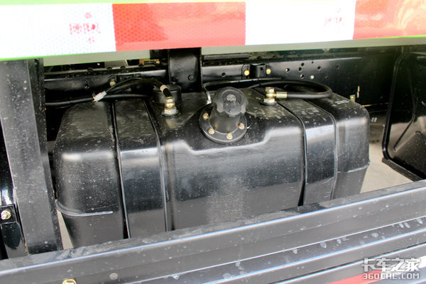 在尿素罐旁边,是复合材料的油箱,复合材料不会生锈,比较干净,而且质量也比较好,不会轻易损坏。