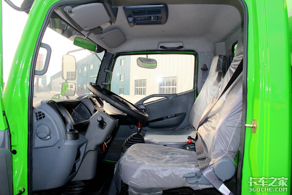 这台时风风驰采用全绿色涂装,与城市里的绝大部分重型渣土车一样,绿色给人的感觉就是清新、环保,这也迎合了环保型渣土车的定位。
