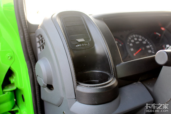 仪表台左侧有一个杯座,试想一下,我们把杯子放在这里,空调出风口吹出凉风,就可以喝到冰镇的水了。不过好像在这个季节说冰镇水不太合适,