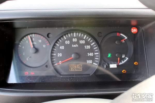 仪表盘采用三环式设计,中间是车速表,左边是气压表,右边是水温和燃油表,这款车没有转速表,听声换挡还是比较考验驾驶员的技术的。
