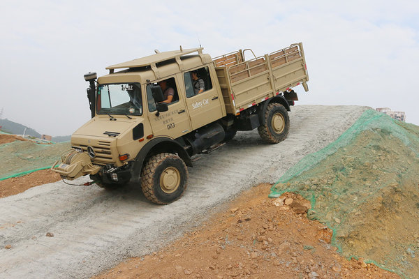 ▲最大爬坡度100%(45度坡),值得注意的是,即使在满载的情况下,而且无论是前行或倒车,它都能实现45度爬坡