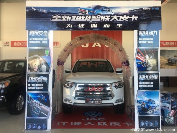 【卡车之家 行情】据本站最新消息,2018年11月23日-2018年12月31日 江淮帅铃T8 2018款 舒适型 2.0T柴油 139马力 四驱 标双排皮卡 在临沧市一心商贸有限公司-江淮皮卡进行促销活动,该款车型实际成交价仅为12.28万元,降幅达0.8万元,近期有购买需求消费者可到店详询。