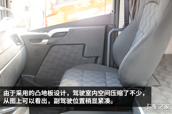 解放JH6凸地板车型降低了驾驶室的高度,整车看起来更加精悍。虽然高度降低,但驾驶室宽度没有发生变化,对舒适性影响并不大,反而在某些特定的运输领域,这种身材的驾驶室更加灵活。