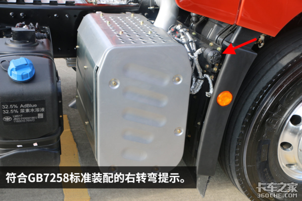 值得一提的是,在GB7258中提到“总质量大于等于12000kg的货车,应装备符合标准要求的车辆右转弯音响提示装置,并在设计和制造上保证驾驶人不能关闭车辆右转弯音响提示装置”,解放紧跟法规,在新车型上已经推出了这样的配置。