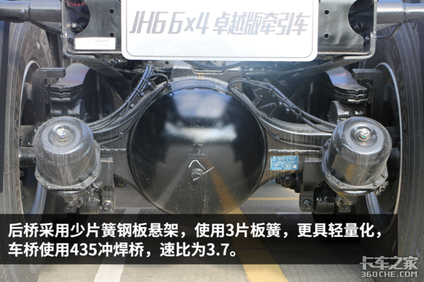 新款JH6凸地板车型将原来前3后4的板簧结构升级为了前2后3板簧结构,实现板簧轻量化,使得单车降重58KG。